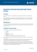 On 15 June 2016 the Legal Aid Queensland Board approved the establishment of a single panel of barristers for complex criminal case matters (the panel) as set out in this policy for use by preferred supplier law firms and in-house lawyers.