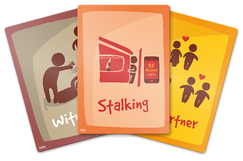 The family violence set includes 68 story cards. Each card supplies the definition for a different legal concept about family violence and court process.