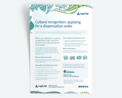 Find out what is a dispensation order, when they are needed, how to apply and where to access support. English and Yumplatok (Torres Strait Creole) versions available.